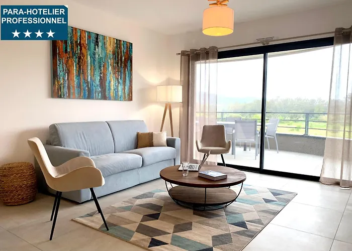 El hotel Appart T3 4 étoiles 4/6 personnes Porto Vecchio, de 4 estrellas, se encuentra a unos 20 minutos a pie de la Iglesia de San Juan Bautista y cuenta con barbería.